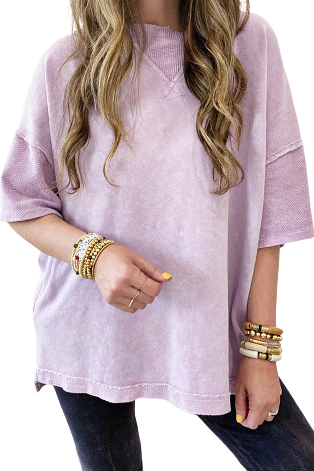 With its drop shoulder design and oversized fit. this tee offers a casual and effortlessly cool look that can be paired with jeans. shorts. or leggings for a laid-back style.